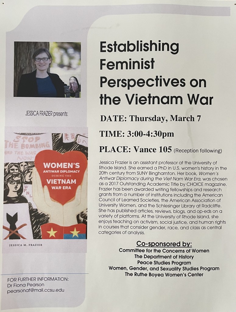 “Establishing Feminist Perspectives on the Vietnam War,” Central Connecticut State University, New Britain, Connecticut, March 7, 2019.